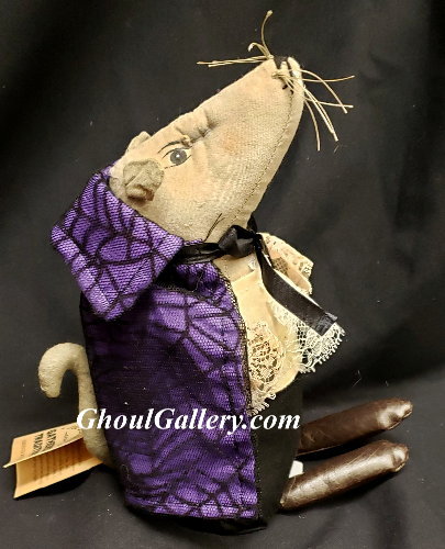 Creatively detailed, painted fabric Radko Rat measuring 8″. Part of series of rats