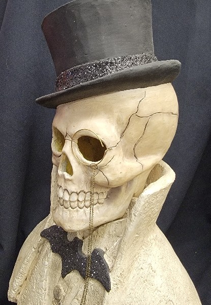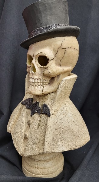 Bethany Lowe is well known for its creations. This has been one of our favorites. This is called Edgar Bust. He looks like the counterpart to Stonella Bust. This came to us in 2014. He has been boxed in our store basement storage. She makes a good compliment to Stonella Bust. But I am reducing inventory. It measures 20 inches tall. She requires a large box with lots of packing materials to protect him.