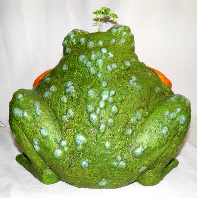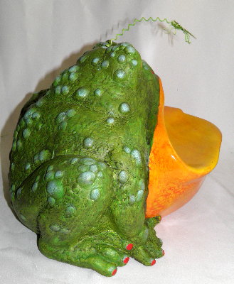 Large creative frog bowl. Check out the fly buzzing around its head, and all the warts on its back. large mouth can lots of candy. 12″ terracotta.