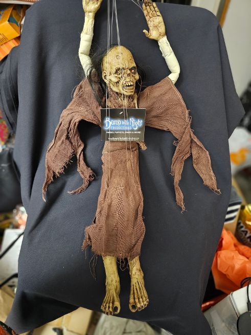 We thought we had sold out of these 19 years ago, but just found a few of these. This a string puppet by Bump in the Night EVIL DEAD Purchased a set of these at the National Haunt Show. BRAND NEW…never used. These are nearly 20 inches tall. These were retired back in 2006.