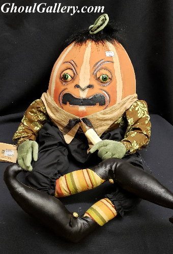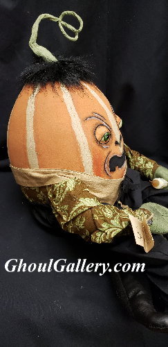 Another one of my favorites…reminiscent of Humpty Dumpty Pumpkin.He measures about 27″ head to toe. He hold a battery operate candle in one hand. He is a big bodied guy and is heavy with sand to to keep him upright,
