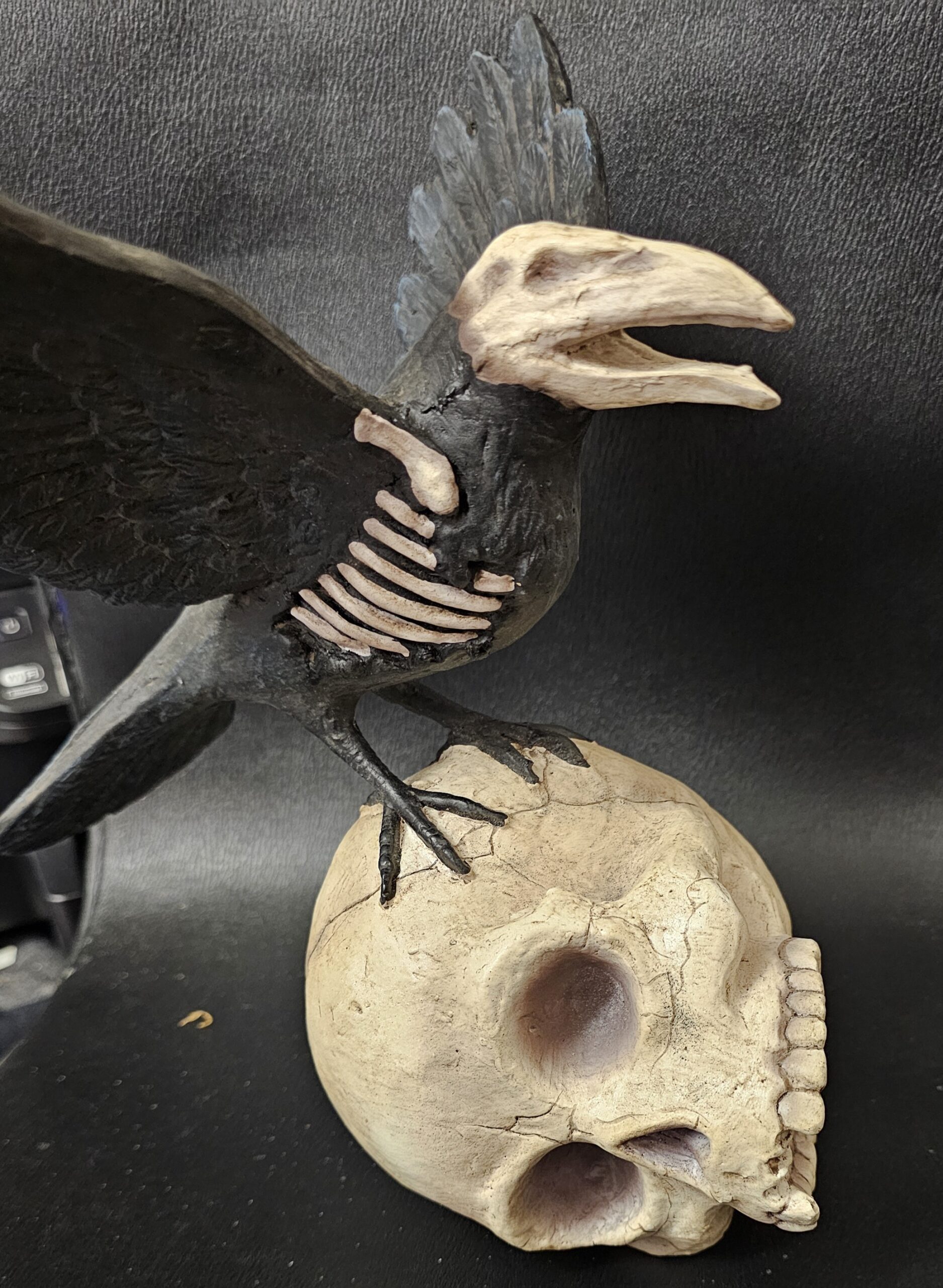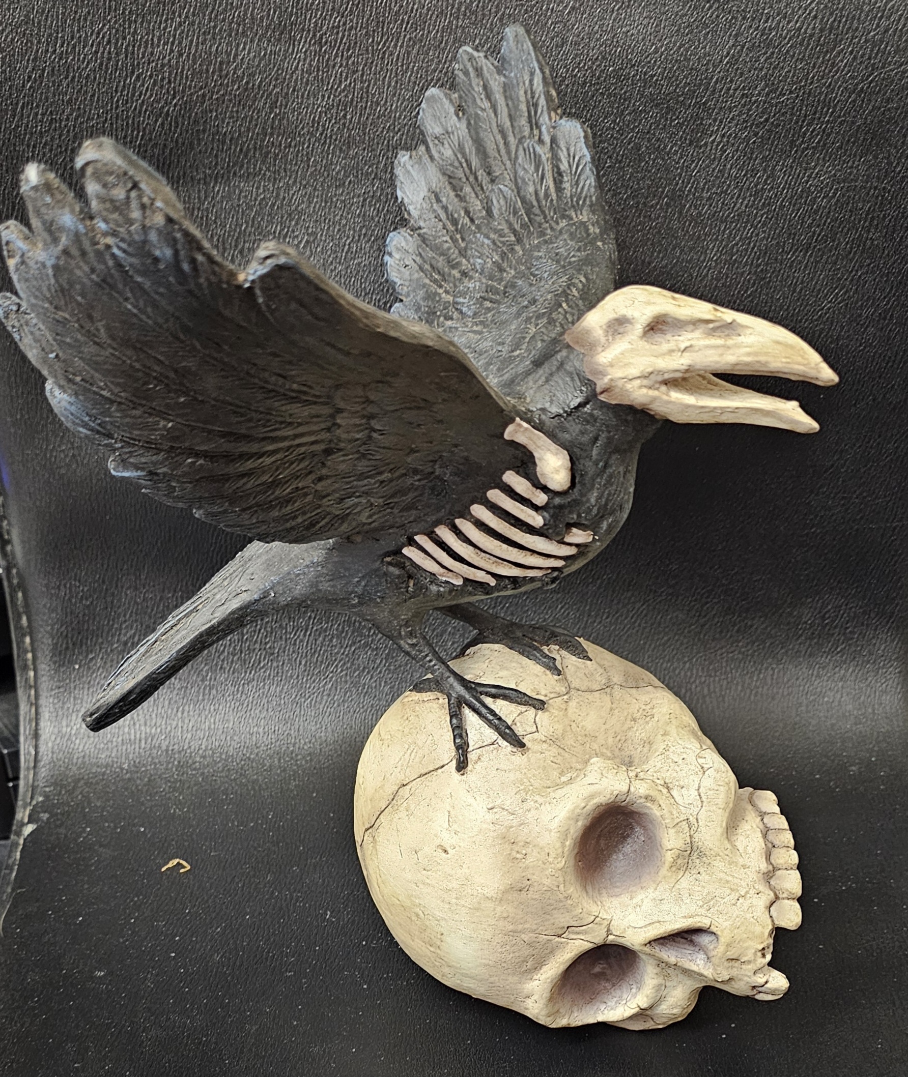 Bethany Lowe Skeleton Raven on Skull 10″ x 10″