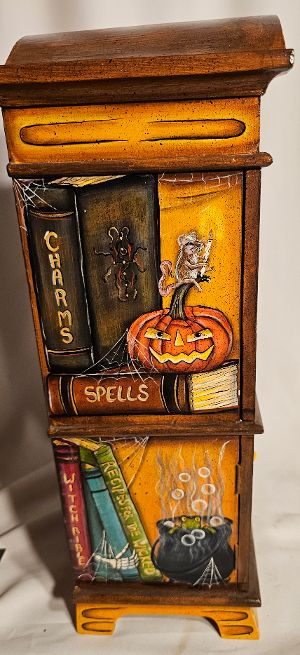 Something to remember: When purchasing one of Spookylvania’s originals, you are not just acquiring a mass produced item. This collectible is a one-of-a-kind piece of art. Just as with any renowned canvas artist, Spookylvania has taken an item, reconverted it, using her creative mind and hours of painstaking attention to detail. Each is a piece of art and are truly unique in shape and imaginative design. Sadly, Spookylvania is no longer among us, so this is the end of her creations. I was honored to be her sole representative of the majority of her work. We are culling our gallery and listing each item as we discover them in our huge inventory of artwork. Hopefully you’ll be honored to own one or more of her creations.
